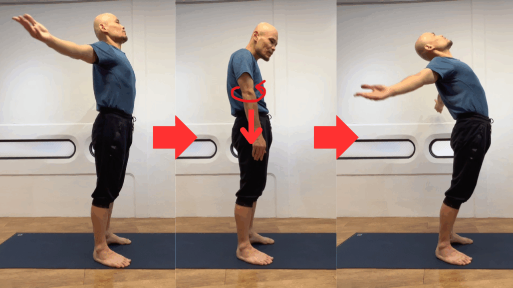 実は、最初から胸を開こうとすると、逆に肩が引っかかってしまいます。